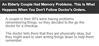 This couple has memory loss problems and, even though, their doctor has a simple solution, they decide to be disobedient and face the consequences.