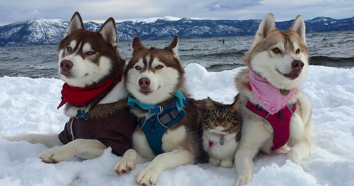 Three Huskies Helped Save A Kitten And Then Became It’s Best Friend